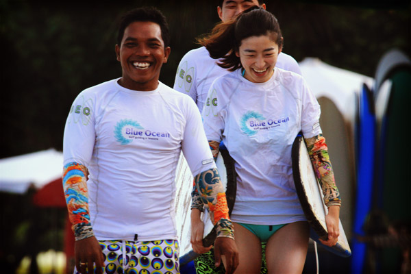 Blue Ocean commissioned Wish Design Solutions to create a brand for their new startup business. Blue Ocean provides surf guiding and lessons in Bali. The logo had to reflect the high level of expertise the instructors bring to each lesson and their unique local knowledge of the best surf locations that sets them apart from their competitors. The finished logo mark draws inspiration from the shape of rolling waves. The curve of the wave is created using surf boards. The movement conveys the excitement of learning to surf and the trill of catching a big wave in a great holiday location. Influenced by tropical ocean colours, the brand colours comprise of warm blue tones and classic black. Black highlights that the instructors put safety first, whilst ensuring you have a fantastic holiday experience.